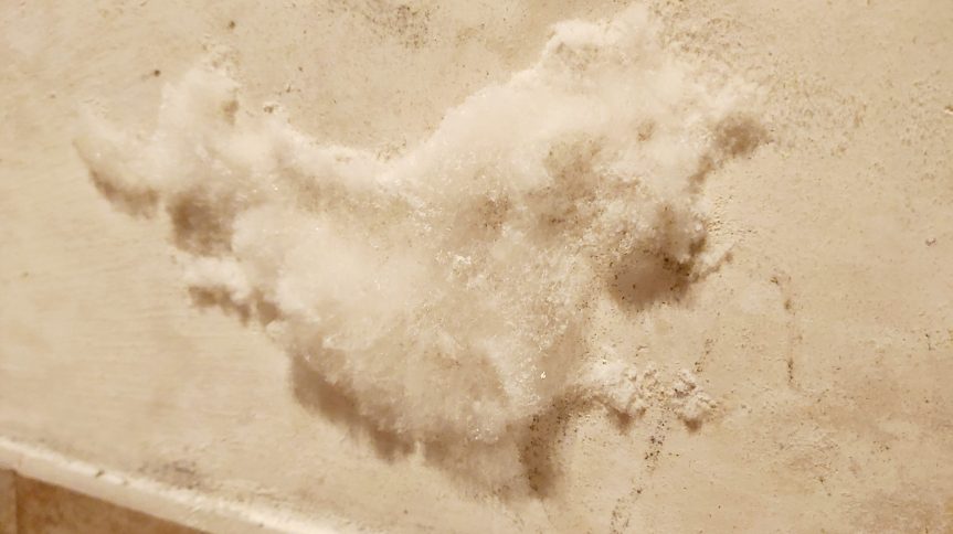 È bene precisare subito che, quello che noi possiamo osservare è toccare con mano su una superficie sono efflorescenze saline dovute alla cristallizzazione dei sali presenti, l’acqua di salinizazzione si disperde per evaporazione lasciando i cristalli di sale sulla superficie.