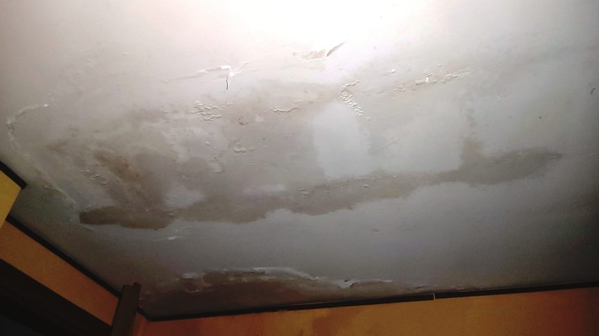 Le infiltrazioni d’acqua meteorica sono le più frequenti e sono diffuse nella maggior parte degli edifici.